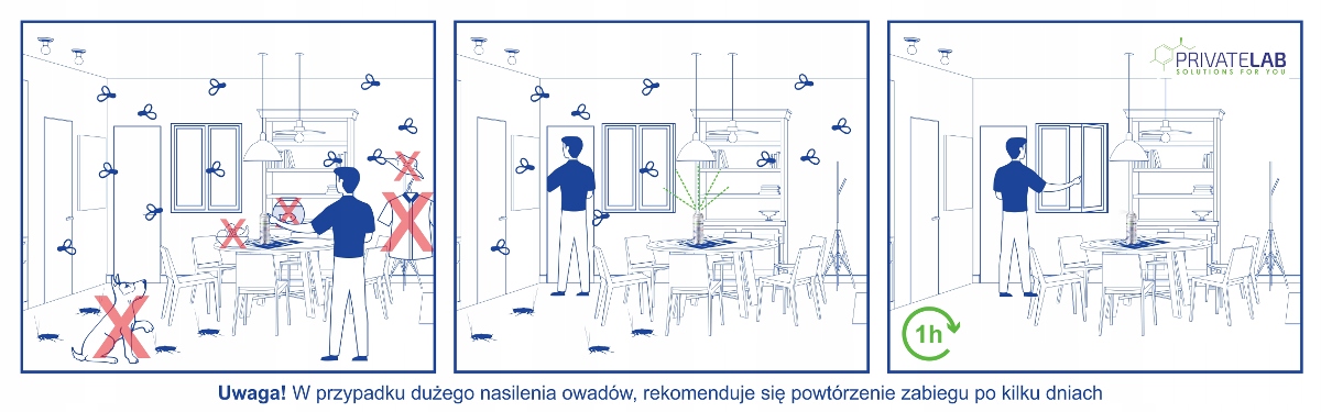 ⚠️ W czasie działania produktu w pomieszczeniu nie mogą przebywać ludzie ani zwierzęta.